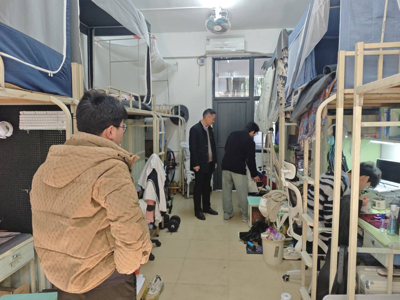 学院党委书记代俊峰带队深入实验室、研究生工作间等教学科研场所开展安全检查,重点查看用电设备规范管理、消防设施完好状态、危化品存储、仪器设备运行状态等情况,对排查发现的隐患问题现场交办,明确整改责任人、整改措施与完成时限。学院党委副书记叶大相带队对学生宿舍区域进行全面检查,聚焦违规电器使用、私拉乱接电线、人走未断电等突出风险点,逐一排查并现场警示教育,同时向学子强调离校前水电关闭、个人贵重物品妥善保管等注意事项,从源头防范安全事故。