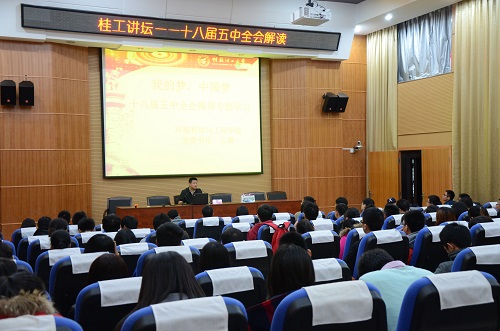 举行了“十八届五中全会解读”学习专题讲座,学院党委副书记郝文佳老师、各年级辅导员和一百多位学生党员参加。讲座由学院党委书记王璐主讲。