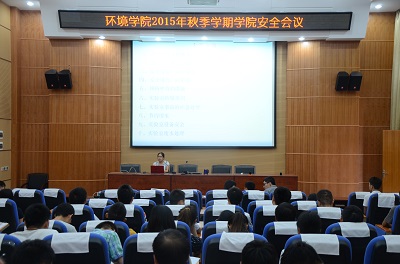在萃华楼报告厅召开2015年秋季学期研究生安全会议暨实验室安全规则培训。学院游少鸿副院长、李艳红副院长、郝文佳副书记出席会议,梁美娜老师出席会议并做实验室安全规则培训,全体在校硕士研究生参加会议。会议由李艳红副院长主持。