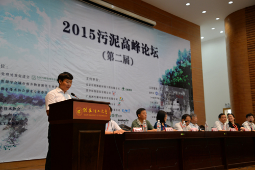 协办的“2015污泥高峰论坛(第二届)”在我校隆重召开。中国工程院、国家发改委、住建部、环保部、广西住建厅、广西发改委、广西环保厅、桂林市政府、桂林市政局、桂林市排水处、设计院、科研院校、运营单位等相关部门领导和技术专家共210人参会。相关领导专家分别解读“水十条”,交流了污泥处理处置的政策、建设、运行等技术和经验。