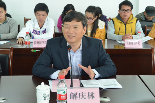 举行。自治区环境保护厅李一平副巡视员,桂林市环境保护局刘学振副局长,解庆林校长,王敦球助理出席会议。学校团委负责人以及桂林高校师生代表参加了座谈会。会议由学院院长曾鸿鹄主持。