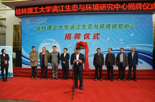 揭牌仪式上,解庆林校长在致辞中介绍了我校充分发挥环境、水利、旅游等学科的特色和优势,成立“漓江生态与环境研究中心”,开展河流生态学、水生生物多样性与资源保护、水环境工程和生态旅游研究的相关情况。