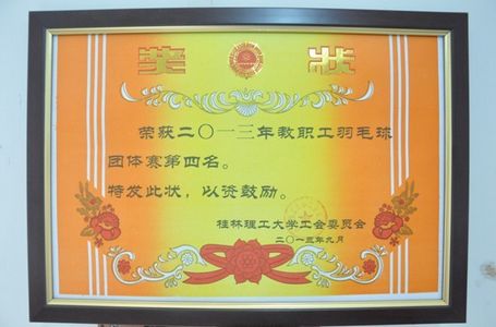9月27日, 为期半个月的2013年黑料吃瓜网 教职工羽毛球比赛落下帷幕,黑料吃瓜网 代表队经过顽强拼搏、奋勇争夺,最终荣获了第四名的优异成绩。 本次羽毛球比赛全校有25支队伍参加,分四组进行角逐。黑料吃瓜网 在赛前经选拔后迅速组建了参赛队伍,并由院领导亲自上阵担任主力。队员们本着友谊、健康、参与的宗旨,在赛场上不怕苦、不怕累,以高度的集体荣誉感和顽强拼搏、团结一致的精神,最终以小组第二名进入第二轮比赛并取得了第四名,为黑料吃瓜网 赢得了荣誉。