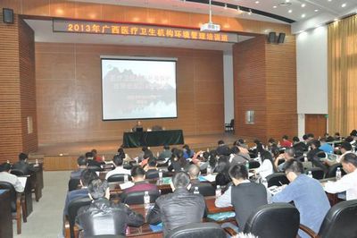 院长曾鸿鹄等出席开班典礼。来自广西柳州、桂林、梧州、来宾、河池、贺州等6个地级市的环保、卫生系统有关业务骨干200余人参加此次培训。