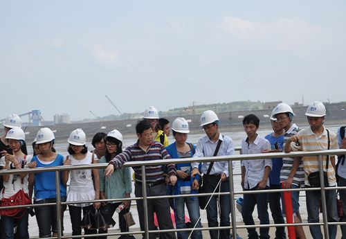 长洲水利枢纽是广西西江水域重要的水利枢纽之一,便于鱼类洄游的鱼道的建设更是全国闻名。师生们现场参观了水利枢纽发电机组。长洲水电开发有限责任公司负责人就水电开发相关知识进行了详细地讲解,同学们对水轮发电机组构造和发电原理、发电工艺流程、水电站基本结构等基础知识有了较全面的了解。