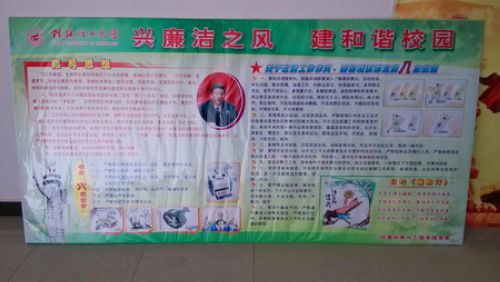 在雁山校区学院办公区展出主题为:“兴廉洁之风 建和谐校园”廉政板报。通过板报宣传,进一步改进工作作风、密切联系师生,以优良的党风政风,促进院风学风,为学院发展保驾护航。