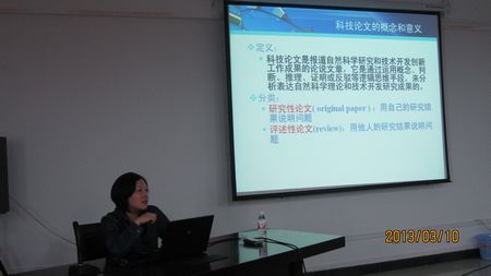 培训活动包括理论指导和实际操作两个环节。首先,由曾鸿鹄院长就科技论文的概念、意义、结构、内容的撰写、前期的准备等方面给予了详细地理论指导。其次,游少鸿副教授针对科技文献的检索、下载、查阅、鉴别等方面,利用学校微机室,给同学们进行讲解和演练,并指导实践操作。