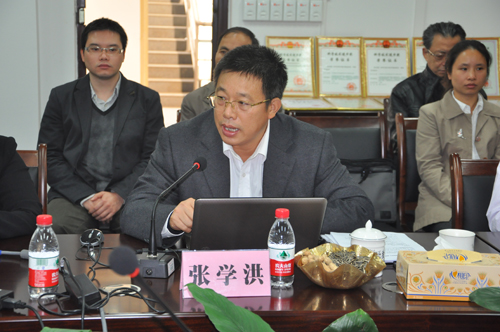 广西环境工程与保护评价重点实验室主任张学洪教授从项目实施总体工作概况、项目实施所取得的成效、存在的问题及其整改措施等方面针对考核指标详细地向专家组汇报了项目的建设情况。
