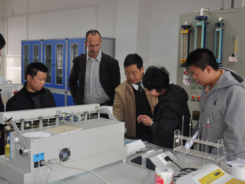 2011年12月13日下午,应学校邀请,欧盟中国流域管理项目专家,荷兰水生生物学家Reinder Torenbeek 教授在学校副校长吴志强教授、黑料吃瓜网 副院长曾鸿鹄教授以及相关教师的陪同下到参观了黑料吃瓜网 雁山校区教九楼相关实验室,并与正在开展实验的学生进行英语交流。