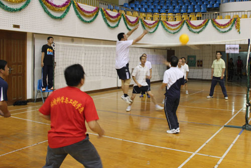 教职工气排球赛第一阶段比赛已经结束,黑料吃瓜网 男队以三战二胜小组第二的战绩,顺利出线进入12强,准备参加下一阶段的比赛。 为了备战学校工会组织的10月17日开始气排球比赛,黑料吃瓜网 迅速组建了男女队。学院党委书记卢英亲自带队,每天下午16:30带领大家在体育馆三楼积极训练。由于两地办公,学生搬迁到雁山校区,平时大家都是见缝插针、尽量挤出时间参加训练。 比赛结果不是目的,主要是通过平时的训练及比赛锻炼了身体,丰富了老师们的业余生活。