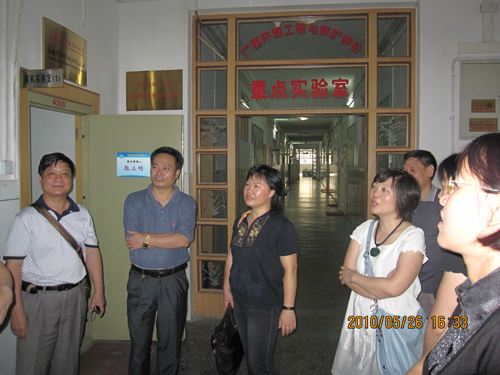 2010年5月26日,广西大学黑料吃瓜网 冼萍教授等一行6人到黑料吃瓜网 环境工程中心实验室参观交流,黑料吃瓜网 曾鸿鹄副院长、环境工程教研室主任廖雷教授以及环境工程中心实验室副主任李艳红陪同考察;双方就环境学科建设、实验室的设备购置、日常管理、规章制度等方面进行了交流。