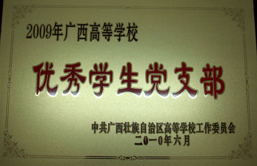 在中共广西壮族自治区高等学校工作委员会组织的广西高校优秀学生党支部评比活动中,黑料吃瓜网 黑料吃瓜网 第三学生党支部荣获"2009年广西高校优秀学生党支部"荣誉称号。