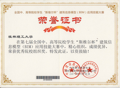徐佳维等5名同学组成的“小霸王学习机”代表队分别获《工程设计专项(含建筑设计、结构设计、设备设计)》和《工程管理专项(含项目管理与投标工具箱)》2个全国专项二等奖,《工程造价专项(含土建算量、安装算量、清单计价)》全国专项三等奖和1个 全能三等奖的好成绩,并获得了本届比赛的优秀组织奖。