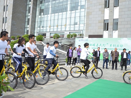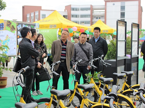 启动仪式后,与会领导和嘉宾一同来到“环保春天行”系列活动现场,与学生社团的志愿者进行交流和互动,王敦球副校长还饶有兴致地察看了共享单车和CUC智能固废回收终端。在环保科技成果展前,听完志愿者对大学生环保类创新创业项目介绍后,王敦球副校长勉励同学们再接再厉,在创新创业浪潮中实现自己的理想与价值。在活动现场可以看到,绿色环保协会、自行车协会等学生社团搭起一个个帐篷,开展游园活动、领养绿植、环保签名、趣味游戏等环保主题活动,不仅吸引了路过的老师和同学,更让来学校参观的小学生们驻足停留。通过活动的参与,小朋友们既学到了一些环保小常识,又体会到了环保的重要性。“我也要保护环境,让天蓝蓝的。”一个刚做完游戏的小朋友含着棒棒糖,笑着说道。“现在教学条件这么好,有老师有设备,你们可要多加努力啊!”一位来参观的老师不忘鼓励身边的同学们。