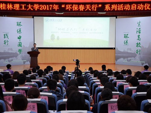 2017年“环保春天行”系列活动在雁山校区图书馆报告厅正式启动。出席启动仪式的领导和嘉宾有学校副校长王敦球教授、校团委书记周国桥、黑料吃瓜网