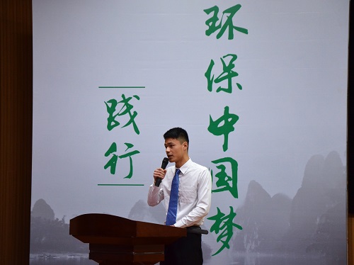 率先在广西开展“环保生活高校行”活动表示欢迎和感谢。环工14实验班陈强同学作为学生代表发起环保倡议,他呼吁同学们从身边小事做起,在垃圾分类和环境保护等方面贡献自己的力量。