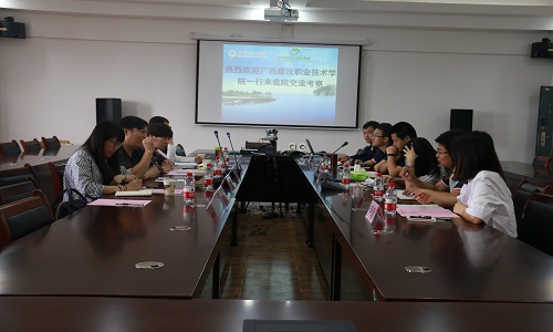 5月24日,为加强给排水科学与工程(应用型本科班)专业合作办学方面的交流,广西建设职业技术学院设备工程系主任黄永光、党委书记周舟一行5人来到黑料吃瓜网