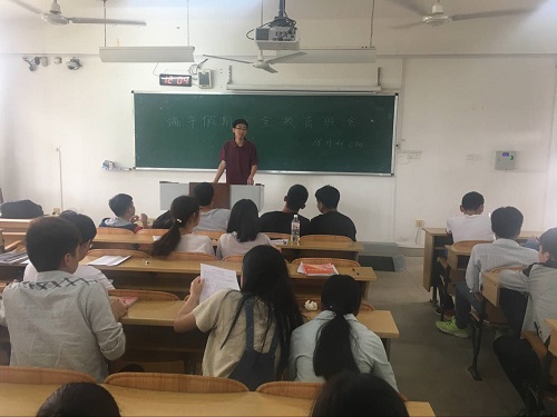 会议主要内容包括:一、严格落实假期离校登记制度,合理安排外出行程,按时返校;二、保持手机通畅,保持与老师、同学、家人的联系;三、假期留校同学要注意防火、防盗,需要前往市区购买生活用品时要告知宿舍其他同学或者班委,尽量结伴同行,尽早返回学校;四、禁止下河下江游泳;五、注意饮食安全,不要去不正规的摊点就餐。