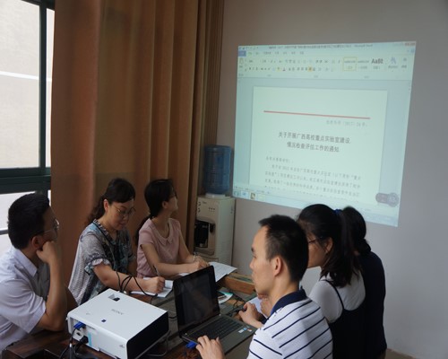 实验室将于2017年7月初接受广西高校重点实验室建设情况检查评估。为做好审核评估评建工作,6月22日上午,中心实验室在雁山校区09224旁玻璃房评估工作布置会,部署安排下一步评估工作。主持工作的副院长游少鸿教授出席会议,会议由实验室副主任梁延鹏老师主持。实验室全体教师全体人员参加会议。时间紧,任务重,学院领导希望在完成手头工作的同时,加班加点争取早日完成任务。