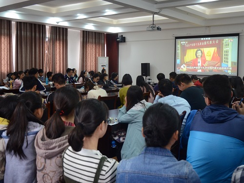 组织学院青年教师及学生代表于上午9时在雁山校区12407会议室,通过网络媒体平台集体观看现场直播,第一时间聆听和学习十九大报告。习近平总书记的报告直抵人心,在师生中引起强烈反响。
