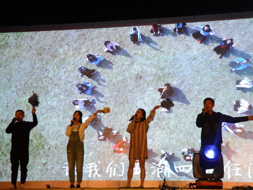 颁奖典礼结束后,晚会在《军人荣耀》中正式拉开帷幕,具有正能量的国防教育节目瞬间点燃了全场的气氛。幽默诙谐而又引领时尚潮流的小品《相亲市场》、深情动听的歌曲串烧《让我留在你身边》、热情洋溢的舞蹈《FIRE》等节目使得现场氛围热闹非凡,《环院版-陪你度过漫长岁月》更是将师生们带入到浓情的大学生活中去,整场晚会高潮不断。