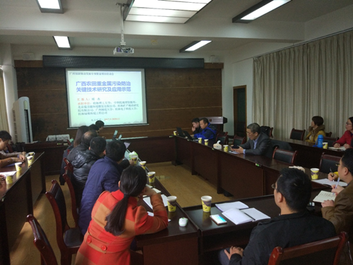 项目组负责人刘杰教授对项目设计总体思路、主要研究内容及目标、研发基础、项目分工及进度安排等进行详细部署和介绍。各课题负责人对所负责的课题具体研究内容和研究方案作了介绍。桂林电子科技大学张学洪教授,中国科学院地理研究所陈同斌研究员作为项目组顾问专家出席了本次会议,并对项目研究工作的整体方案和工作细节同项目组成员展开讨论。专家对项目给予了充分肯定,并针对本项目提出了意见和指导,希望项目组重视完善好项目过程管理机制,各课题要注重凝聚特色,重视成果转化和显示度,以项目指标为目标导向性开展工作,密切高校、政府和企业的三方交流和合作,引领环保行业和产业发展。