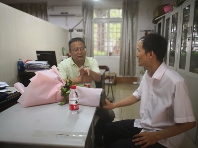 覃礼堂副研究员对学校领导的关心与慰问表示衷心感谢,同时表示会珍惜我校目前良好的发展环境和发展机遇,将继续以饱满的工作热情,为学校的建设与发展做出更大的贡献。