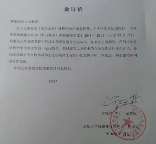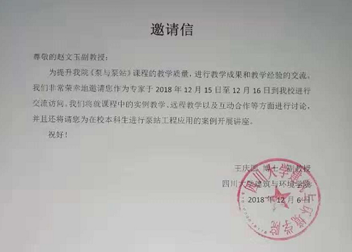 《泵与泵站》课程教师的邀请,学院赵文玉副教授到重庆、成都两地与两校相关就泵与泵站教学中的案例教学、远程教学、教材编写及互访授课等方面的合作进行了广泛、深刻地交流,达成了初步的合作协议。