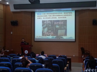 在十二栋萃华楼报告厅对全院研究生进行了实验室安全使用知识培训。