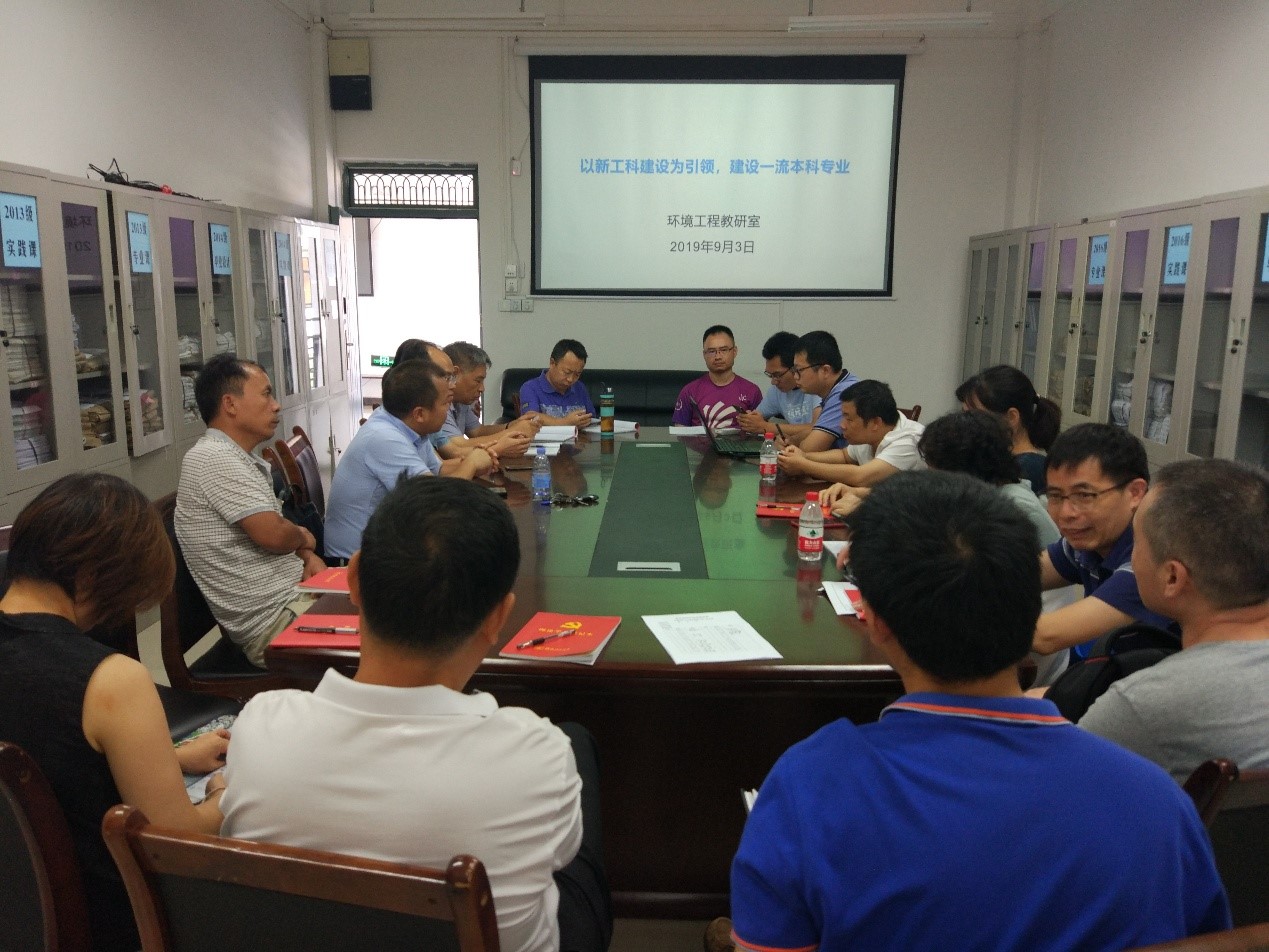 承担的教育部“新工科”专业改革类项目”新工科背景下的地方高校环境类专业多方协同育人模式改革与实践”的实施和进展情况,以及下一步继续推进新工科建设工作的建议。与会教师们围绕新工科和一流本科专业建设以及党员同志在建设中应该发挥的作用展开了热烈讨论。大家回顾了专业的办学历史,总结了专业发展经验,纷纷为本专业建设一流本科专业献言献策,部分党员同志还分享了如何进一步提高环境工程应用型高级人才培养质量的经验和做法。与会教师一致认为,新工科和一流本科建设是新时代国家战略和社会产业发展要求,必将深刻影响着未来的工程教育,我们要主动求变,积极适应新科技革命和产业变革的浪潮,而党员同志更要在其中起到模范带头作用。