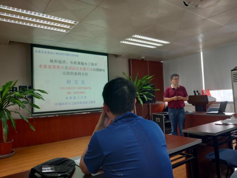 2019年10月22日,应中国轻工业南宁设计工程有限公司、中铁四院集团南宁勘察设计院有限公司的邀请,给排水教研室赵文玉副教授赴南宁在两家设计院司开展了《水泵选型要点及试运行水量不足案例解析》的专题讲座,对一些水泵应用典型案例进行了深入的探讨和交流,工程师们表示收获很大,赵文玉老师也丰富了水泵应用案例,也有助于丰富教学内容。