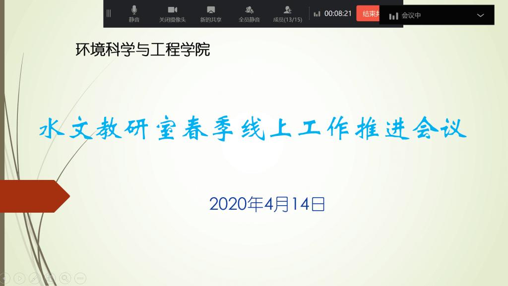 水文学与水资源工程专业召开春季线上工作推进会议,会议由水文教研室主任张帅普老师主持,教研室全部教师参加。