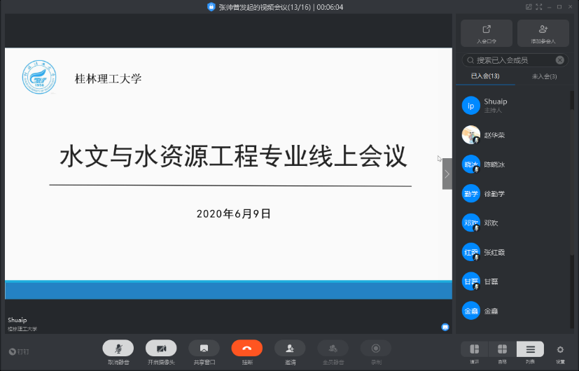 6月9日,水文与水资源工程教研室召开线上教学工作会议,会议由教研室主任张帅普老师主持,教研室全体老师参加。