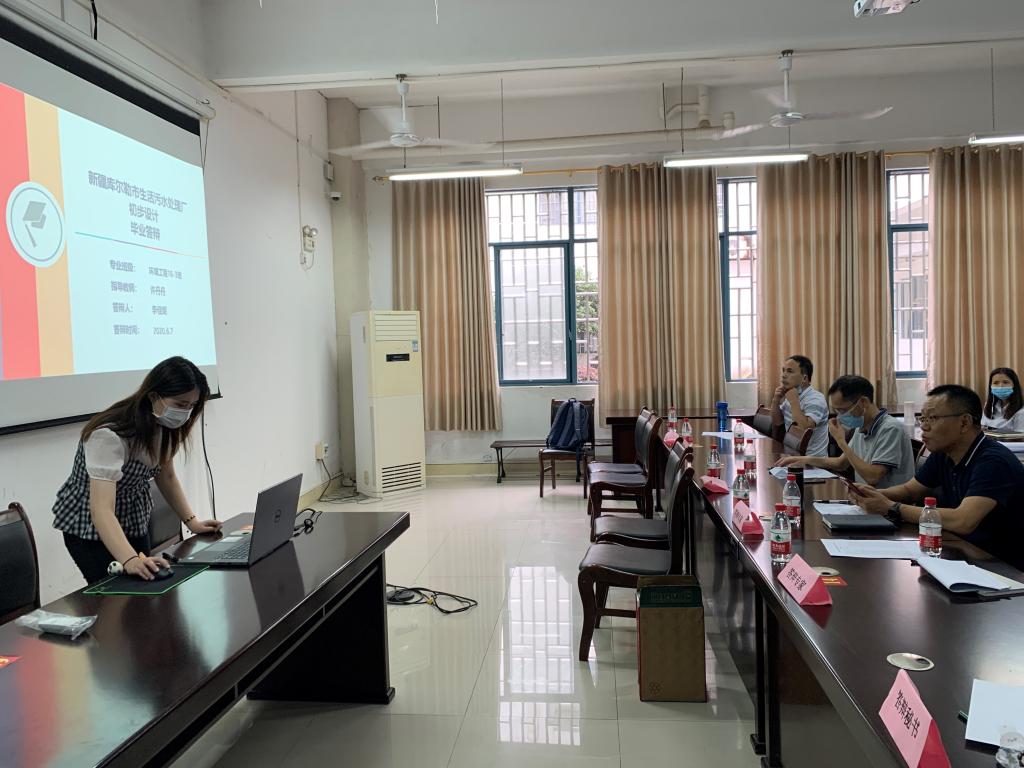 答辩会议严格履行了我校本科生论文答辩程序。首先由答辩秘书宣读答辩规则,其次由参加答辩的学生对自己毕业论文(设计)的选题目的、设计依据、工艺路线、计算过程、平面图设计、各构筑物三视图和设计结论等方面以PPT的形式进行5-7分钟的称述,接着由答辩组老师就该生论文(设计)的问题向学生提出问题并给出修改建议,最后,待答辩学生将问题回答完毕后,评审组老师对答辩学生整个的答辩表现进行评分,并由秘书对答辩过程进行详细的记录。答辩现场气氛紧张热烈,松弛有度。本次本科毕业论文(设计)答辩对于及时发现毕业生论文(设计)中的不足,提高本专业学生论文(设计)的水平具有积极意义。