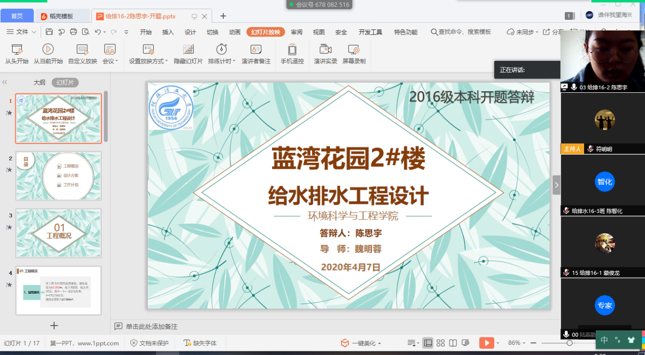 给排水专业毕业生共计36人(约占总人数30%)在4月7日上午进行了线上开题答辩。