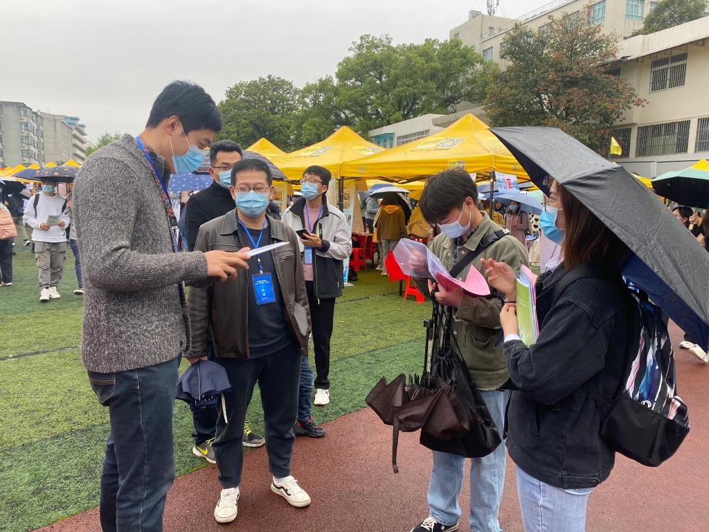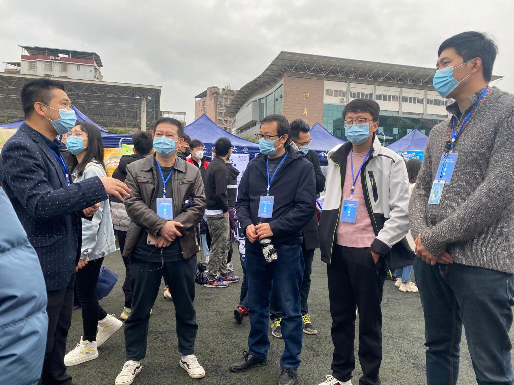 党委书记姜子亮、党委副书记郝文佳等党政领导、教研室主任、班主任老师莅临双选会现场指导工作,关注学生双选会就业情况。