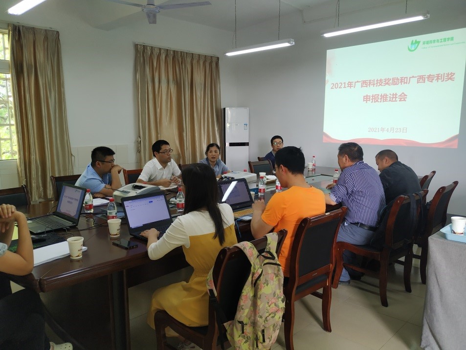 在屏风校区11403开组织广西科技奖励和广西专利申报推进会。本次会议由学院副院长黄亮亮主持,邀请到科技处副处长莫凌云莅临解读申报细则并对各申报教师进行疑难解答,参加此次推进会的教师有今年拟申报广西科技奖励或广西专利奖的老师。