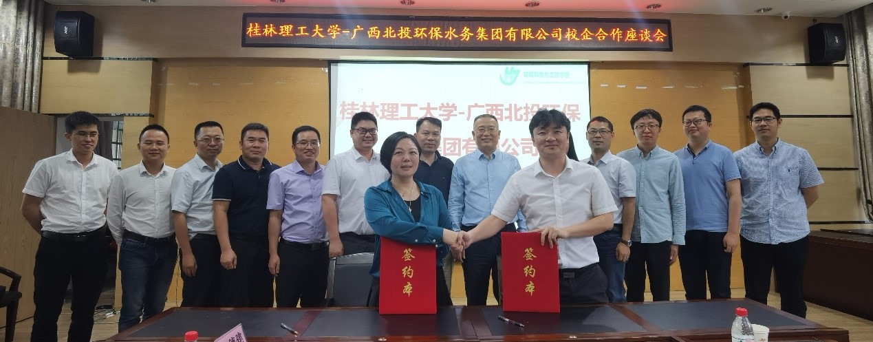 会上,蒋建谊总经理介绍了广西北投环保水务集团有限公司发展现状,王敦球校长详细介绍了我校人才培养与科研业务方向,双方就今后的合作内容而作了深入探讨。双方明确表示,将深化产教融合,加强企业与科研院所的联系,积极探索建立区域生态环境保护与利用协同、污染治理互惠共赢的多边合作机制,推动广西生态环保产业健康发展。