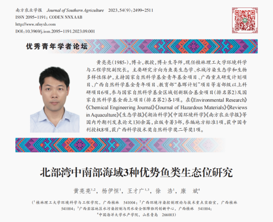 论文推荐│北部湾中南部海域3种优势鱼类生态位研究