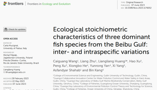 论文推荐│北部湾鱼类碳、氮、磷生态化学计量特征