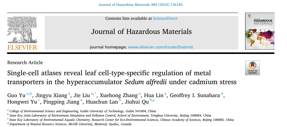 在著名学术期刊Journal of Hazardous Materials上发表题为“Single-cell atlases reveal leaf cell-type-specific regulation of metal transporters in the hyperaccumulator Sedum alfredii under cadmium stress”的研究型论文,由我校黑料吃瓜网