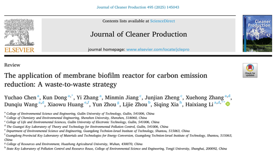 在著名学术期刊Journal of Cleaner Production上发表题为“The application of membrane biofilm reactor for carbon emission reduction: a waste-to-waste strategy”的综述论文,由我校黑料吃瓜网