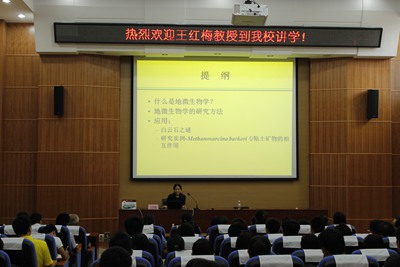 讲座开始,王教授向同学们阐述了什么是地质微生物学,并分析了地质微生物学的研究方法,让同学们能更深入的了解了微生物地质学。接下来,王教授讲述了地球微生物学的重要意义,并以图文演示了化石与热带雨林CH4浓度及白云石的例子,说明了微生物与地质和环境之间存在的关联与影响,还教我们应该如何利用微生物来考察地质与环境。最后,王教授希望我们怀着科学求知的态度,坚持自主创新,在科学之路上走得更远。