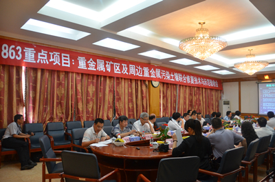 现场检查结束后,专家组在教八楼会议室听取了我校特聘的环境科学与工程“八桂学者”、中国科学院地理科学与资源研究所陈同斌研究员关于重金属矿区及周边重金属污染土壤联合修复技术与示范的汇报,审阅了相关资料,认为该课题顺利完成了既定研究任务,同意通过验收,并建议课题组进一步深化研究,为十二五课题立项打好基础。
