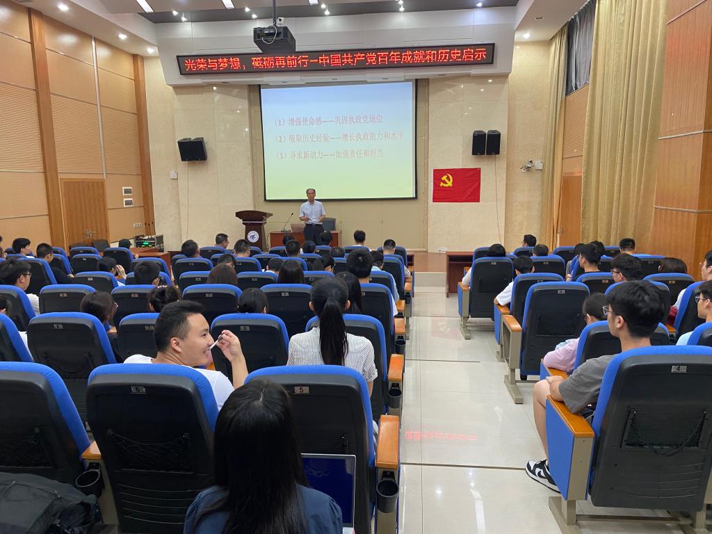 邀请马克思主义学院党委书记王青山教授于6月1日在萃华楼报告厅开展“光荣与梦想,砥砺再前行—中国共产党百年成就和历史启示”专题党课,120余名师生党员参加。