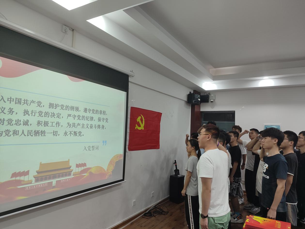 最后,支部副书记刘勇毅同志带领预备党员同志们面对党旗进行庄严宣誓,也向大会表达了自身的想法与决心,不忘初心跟党走,在今后的学习工作中,坚定目标、严格要求自身,努力改正现有不足,积极向优秀共产党员学习树立先锋模范作用,争取早日正式加入中国共产党。