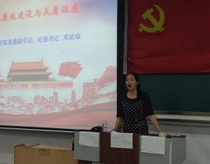 、机械与控制工程学院、马克思主义学院、艺术学院、理学院、测绘与地理信息学院)联合分党校第二十一期预备党员培训班在06105开讲。本次党课的主题为“党风廉政建设与反腐倡廉”,邀请外国语学院党委副书记邓洁琼担任主讲,全体培训班学员参加。