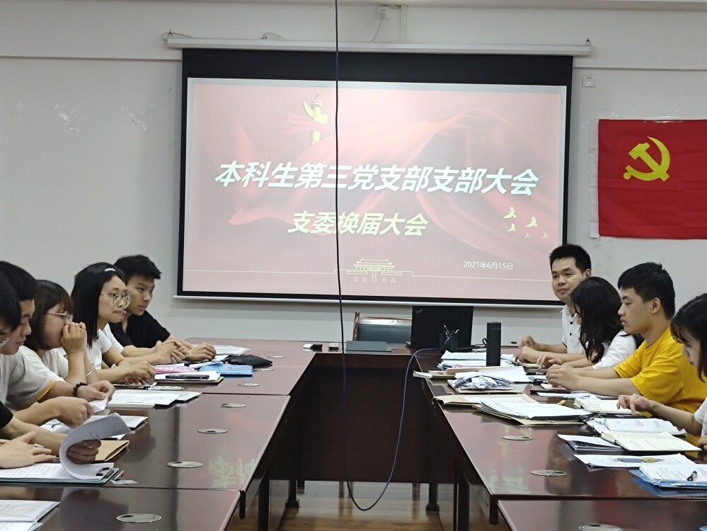 本科生第三党支部在雁山校区12407会议室召开党支部委员换届大会,选举产生新一届的支部委员。会议由支部书记孙云龙老师主持。