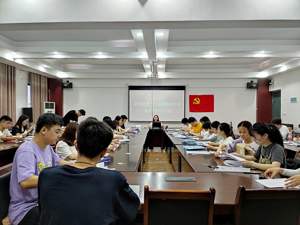 本科生第三党支部在雁山校区12407会议室召开支部预备党员转正大会,支部党员、预备党员参加会议,会议由支部书记孙云龙老师主持。会议讨论有关中共预备党员宋梦颖等七名同志按期转正成为中共正式党员的问题。