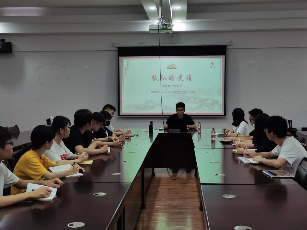 本科生第一党支部在雁山校区萃华楼12407会议室开展党史学习教育主题党课,全体党员同志参加活动,本次活动由党支部书记潘泓序主持。
